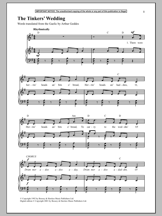 Download or print Anonymous The Tinkers Wedding sheet music, chords and digital score arranged for Piano & Vocal. This Traditional score includes 2 page(s).