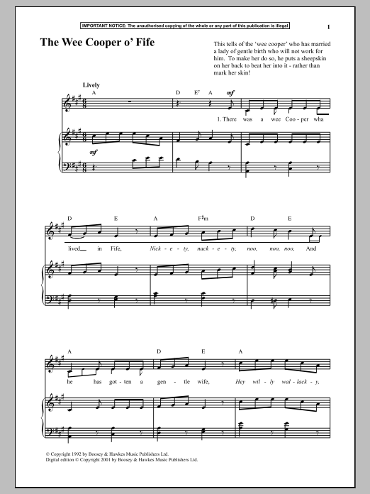 Download or print Anonymous The Wee Cooper O Fife sheet music, chords and digital score arranged for Piano & Vocal. This Traditional score includes 2 page(s).