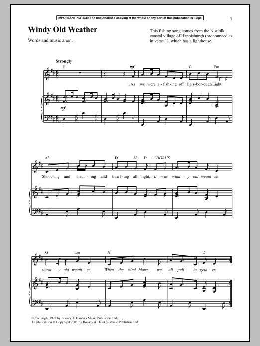 Download or print Anonymous Windy Old Weather sheet music, chords and digital score arranged for Piano & Vocal. This Traditional score includes 2 page(s).