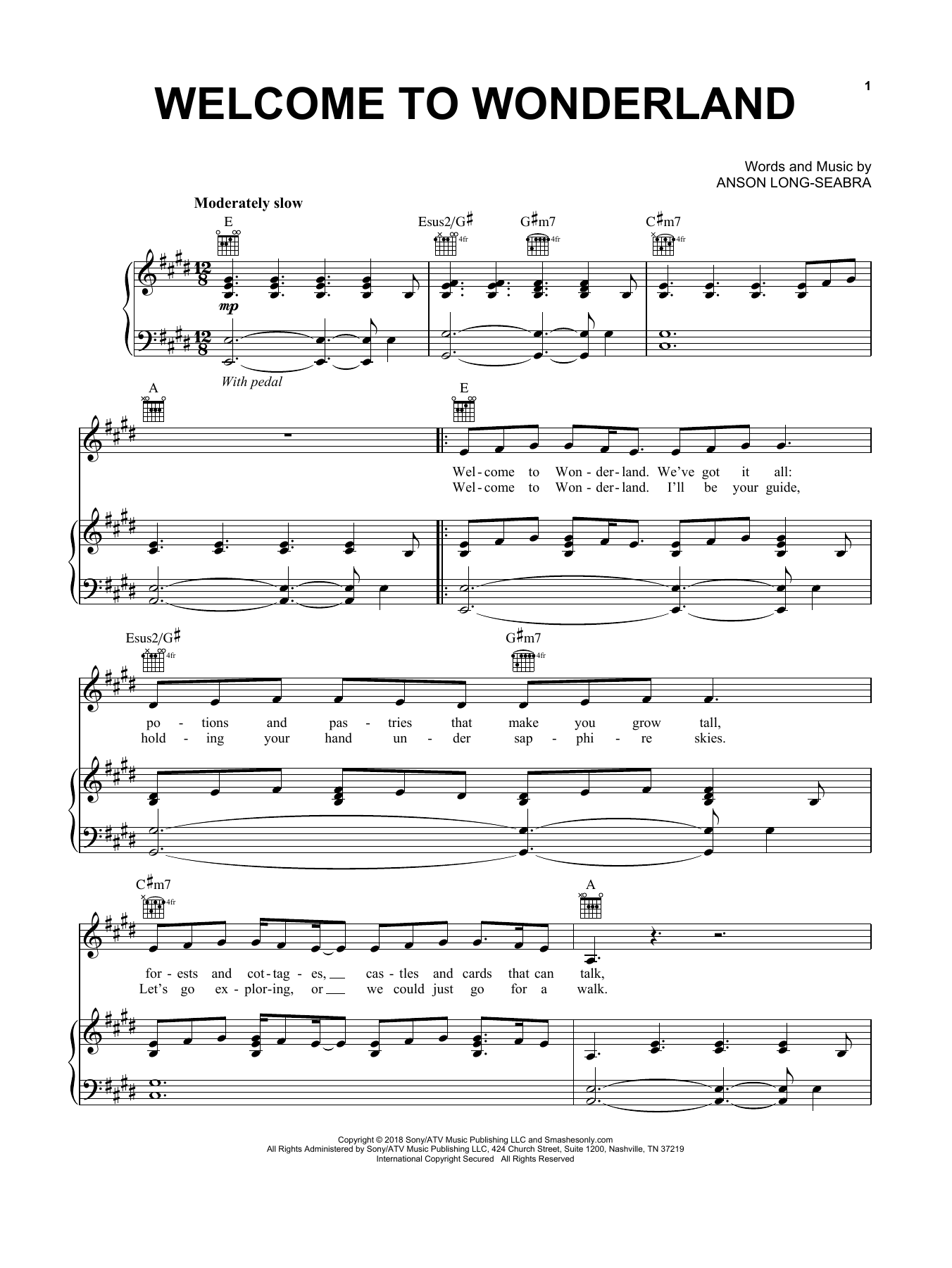 Download or print Anson Seabra Welcome To Wonderland sheet music, chords and digital score arranged for Piano, Vocal & Guitar Chords (Right-Hand Melody). This Pop score includes 4 page(s).