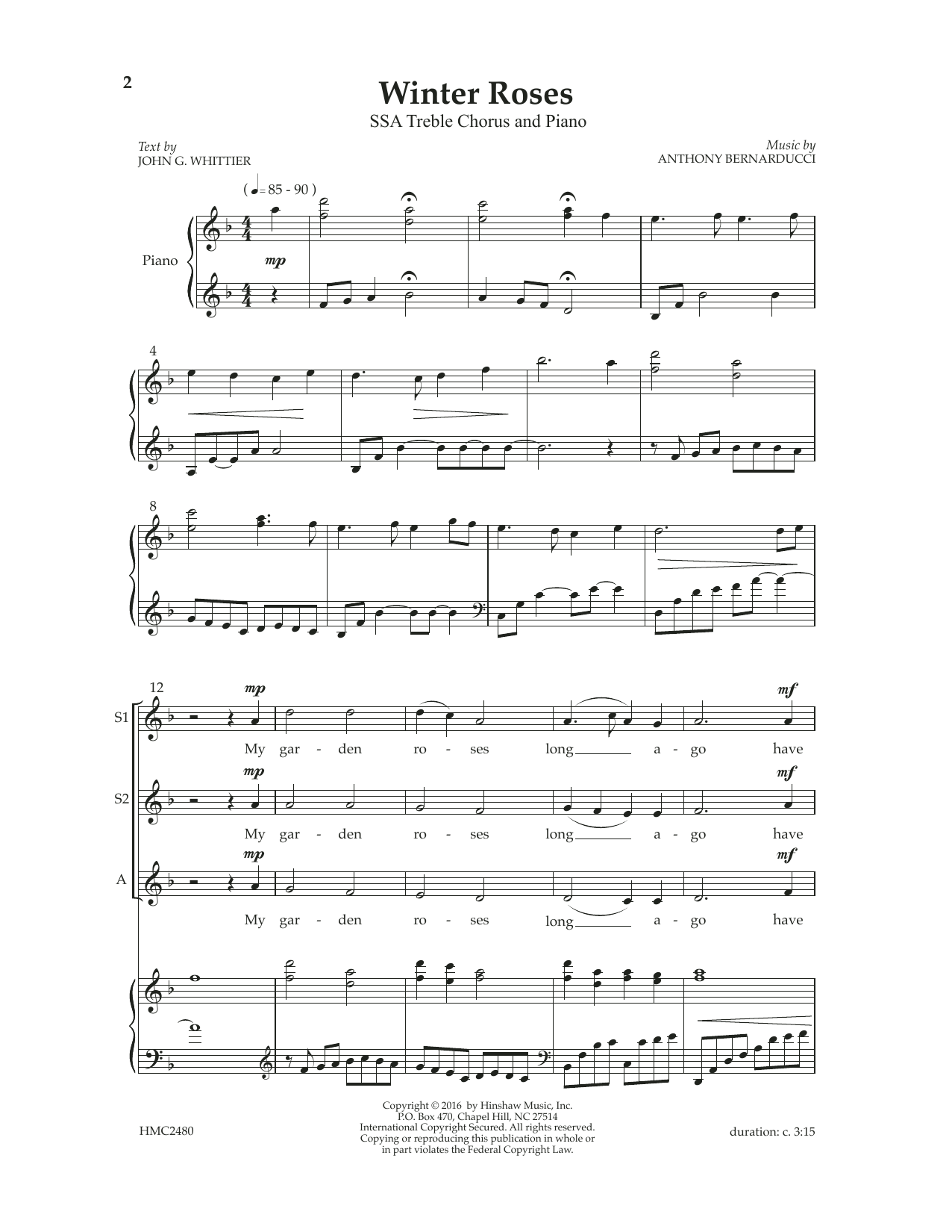 Download or print Anthony Bernarducci Winter Roses sheet music, chords and digital score arranged for SSA Choir. This Concert score includes 7 page(s).