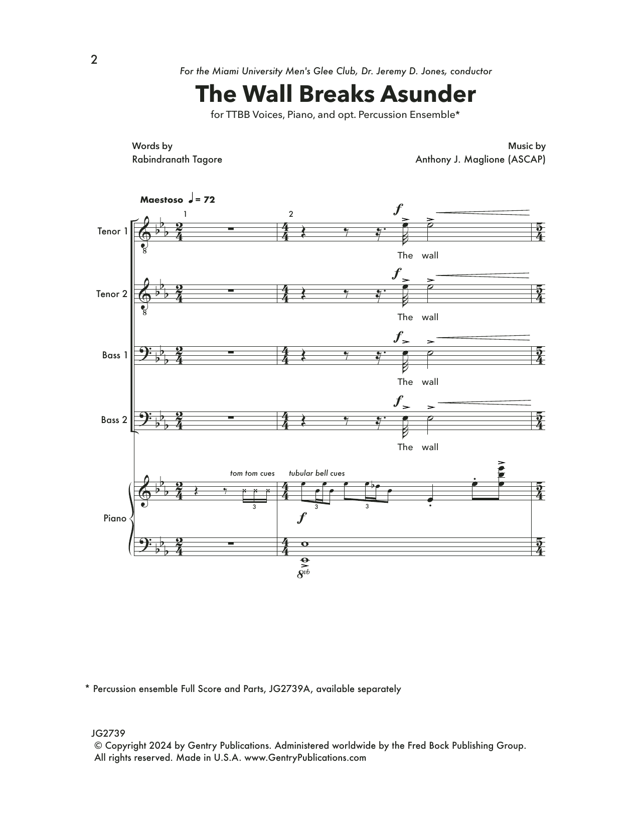 Download or print Anthony J. Maglione The Wall Breaks Asunder sheet music, chords and digital score arranged for TTBB Choir. This Concert score includes 11 page(s).
