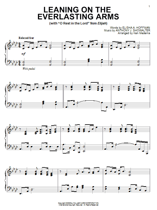 Download or print Anthony J. Showalter Leaning On The Everlasting Arms sheet music, chords and digital score arranged for Piano Solo. This Christian score includes 6 page(s).