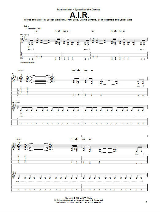 Download or print Anthrax A.I.R. sheet music, chords and digital score arranged for Guitar Tab. This Metal score includes 10 page(s).