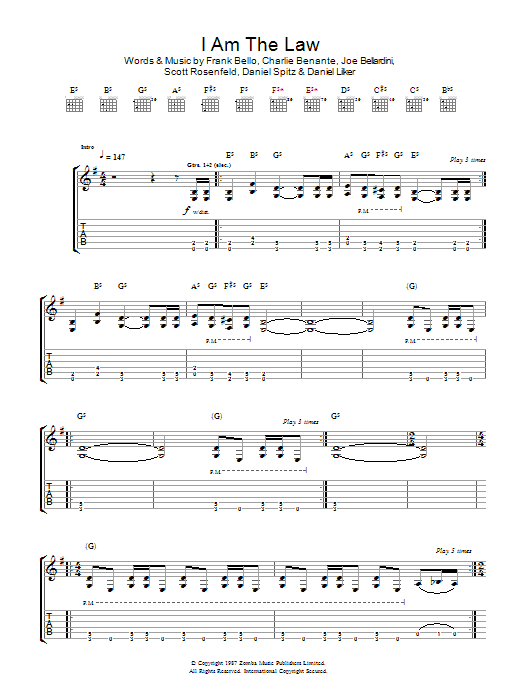 Download or print Anthrax I Am The Law sheet music, chords and digital score arranged for Guitar Chords/Lyrics. This Rock score includes 4 page(s).