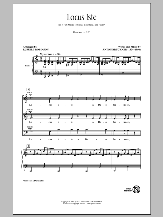 Download or print Russell Robinson Locus Iste sheet music, chords and digital score arranged for 3-Part Mixed Choir. This Classical score includes 7 page(s).