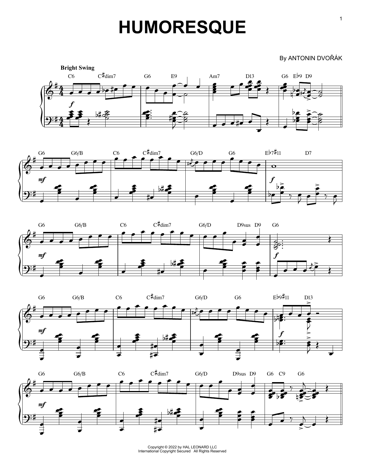 Download or print Anton Dvorak Humoresque [Jazz version] (arr. Brent Edstrom) sheet music, chords and digital score arranged for Piano Solo. This Classical score includes 3 page(s).