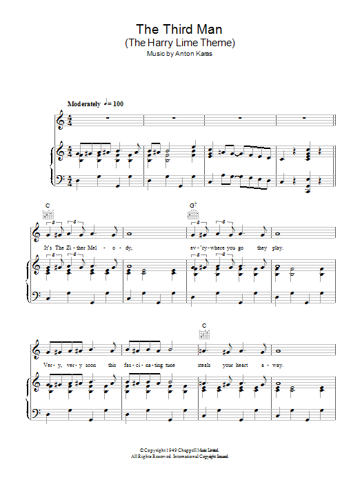 Download or print Anton Karas The Third Man (The Harry Lime Theme) sheet music, chords and digital score arranged for Guitar Chords/Lyrics. This Film/TV score includes 2 page(s).