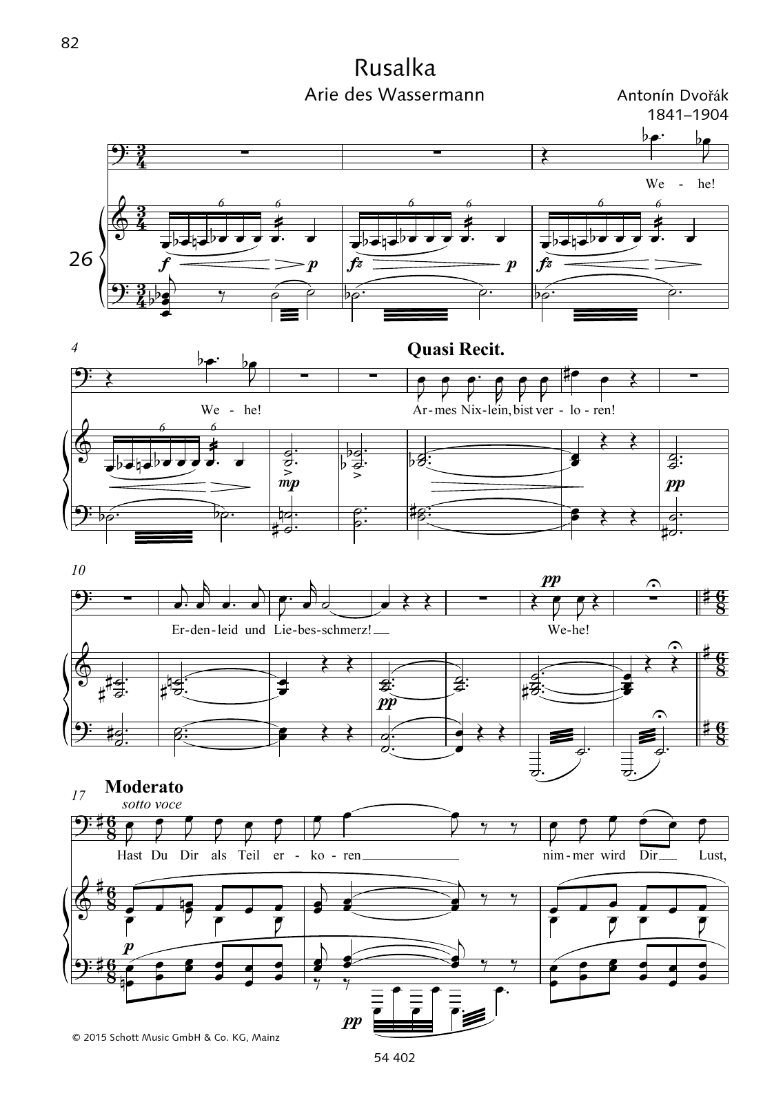 Download or print Antonín Dvorák Wehe! Wehe! Armes Nixlein, bist verloren sheet music, chords and digital score arranged for Piano & Vocal. This Classical score includes 6 page(s).
