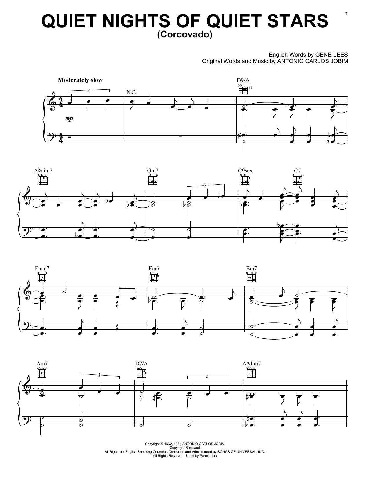 Download or print Antonio Carlos Jobim Quiet Nights Of Quiet Stars (Corcovado) sheet music, chords and digital score arranged for Marimba Solo. This Jazz score includes 2 page(s).