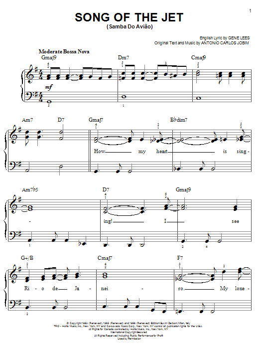 Download or print Antonio Carlos Jobim Song Of The Jet (Samba do Avião) sheet music, chords and digital score arranged for Easy Lead Sheet / Fake Book. This Latin score includes 2 page(s).