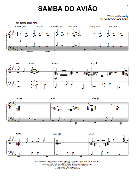 Download or print Antonio Carlos Jobim Song Of The Jet (Samba do Aviao) [Jazz version] (arr. Brent Edstrom) sheet music, chords and digital score arranged for Piano Solo. This Jazz score includes 4 page(s).