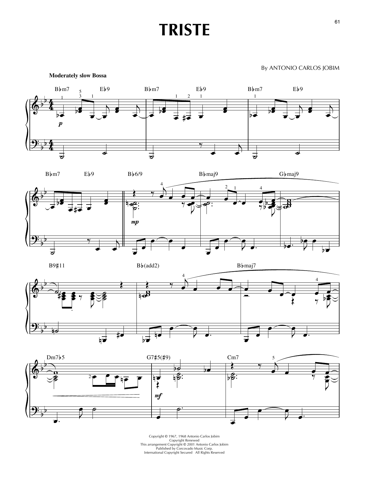 Download or print Antonio Carlos Jobim Triste [Jazz version] (arr. Brent Edstrom) sheet music, chords and digital score arranged for Piano Solo. This Jazz score includes 5 page(s).