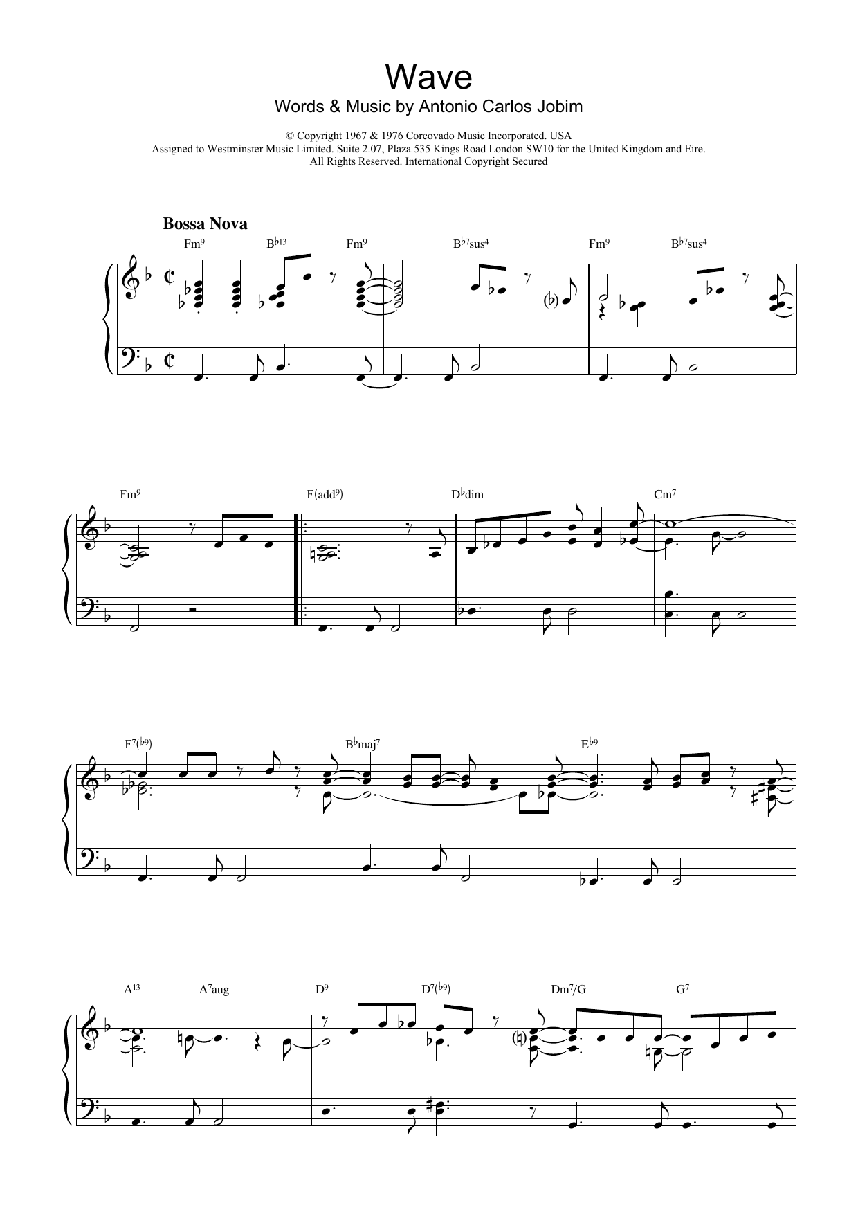 Download or print Antonio Carlos Jobim Wave sheet music, chords and digital score arranged for Lead Sheet / Fake Book. This Jazz score includes 2 page(s).