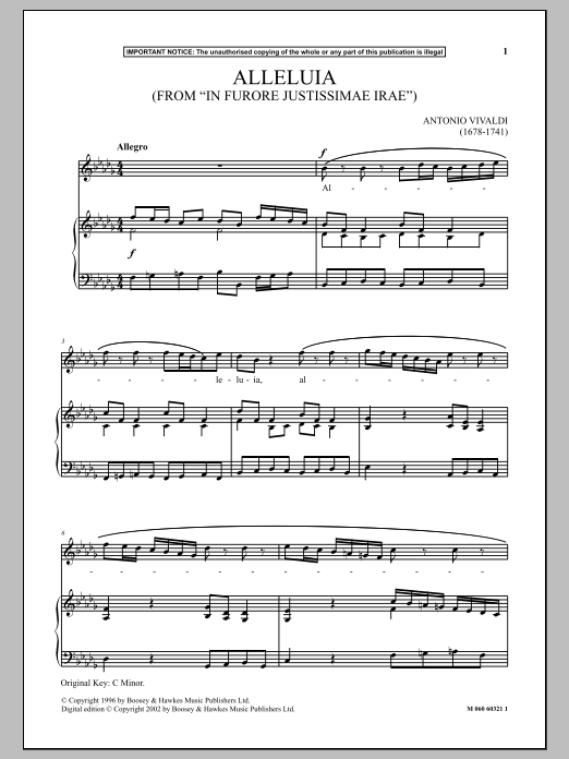 Download or print Antonio Vivaldi Alleluia (from In Furore Justissimae Irae) sheet music, chords and digital score arranged for Piano & Vocal. This Classical score includes 5 page(s).