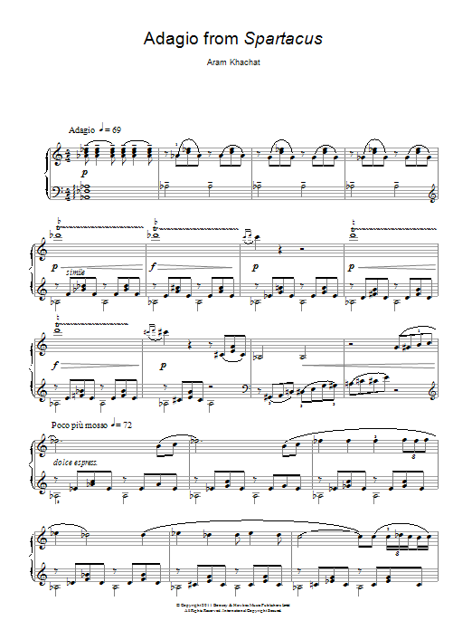 Download or print Aram Khachaturian Adagio From Spartacus sheet music, chords and digital score arranged for Piano Solo. This Classical score includes 4 page(s).