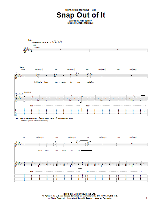 Download or print Arctic Monkeys Snap Out Of It sheet music, chords and digital score arranged for Guitar Tab. This Alternative score includes 8 page(s).