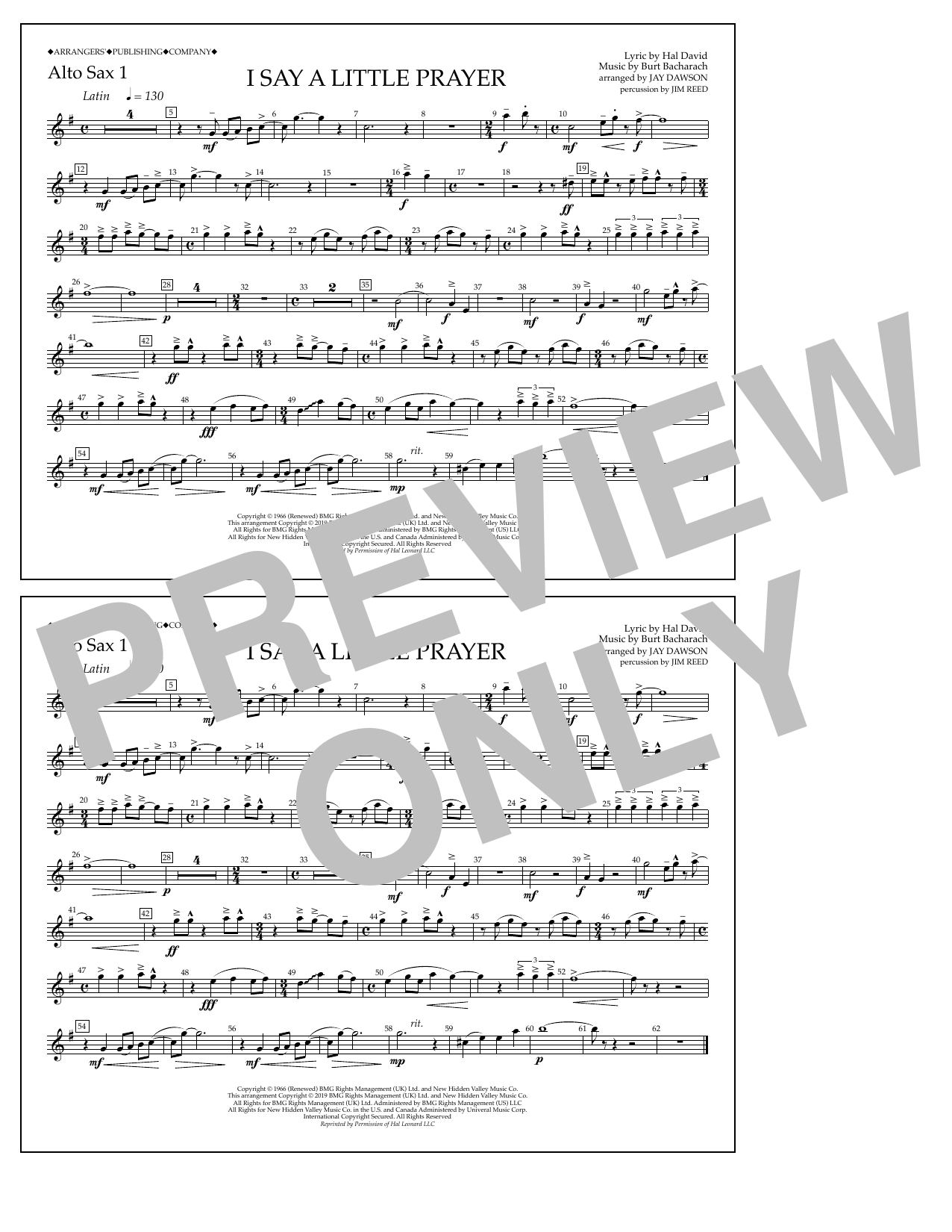 Quick facts I Say a Little Prayer (arr. Jay Dawson) - Alto Sax 1 about digital sheet music