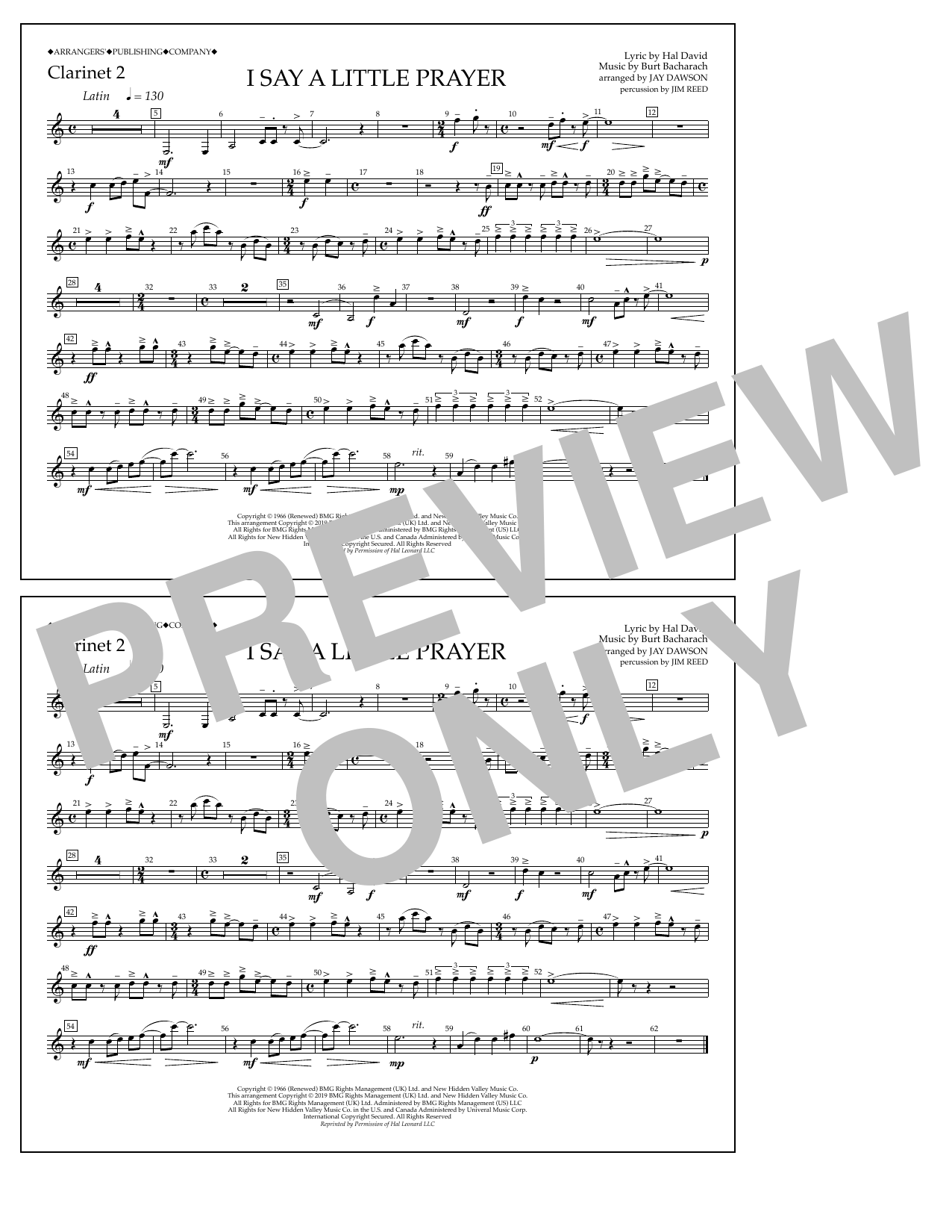 Quick facts I Say a Little Prayer (arr. Jay Dawson) - Clarinet 2 about digital sheet music