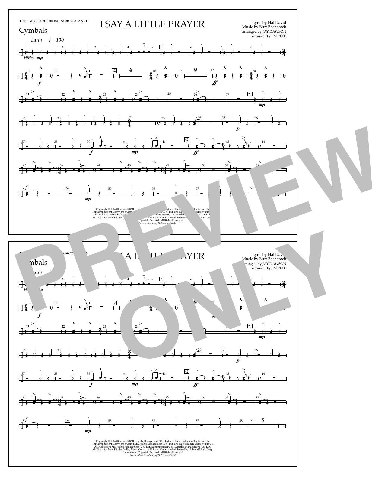 Quick facts I Say a Little Prayer (arr. Jay Dawson) - Cymbals about digital sheet music