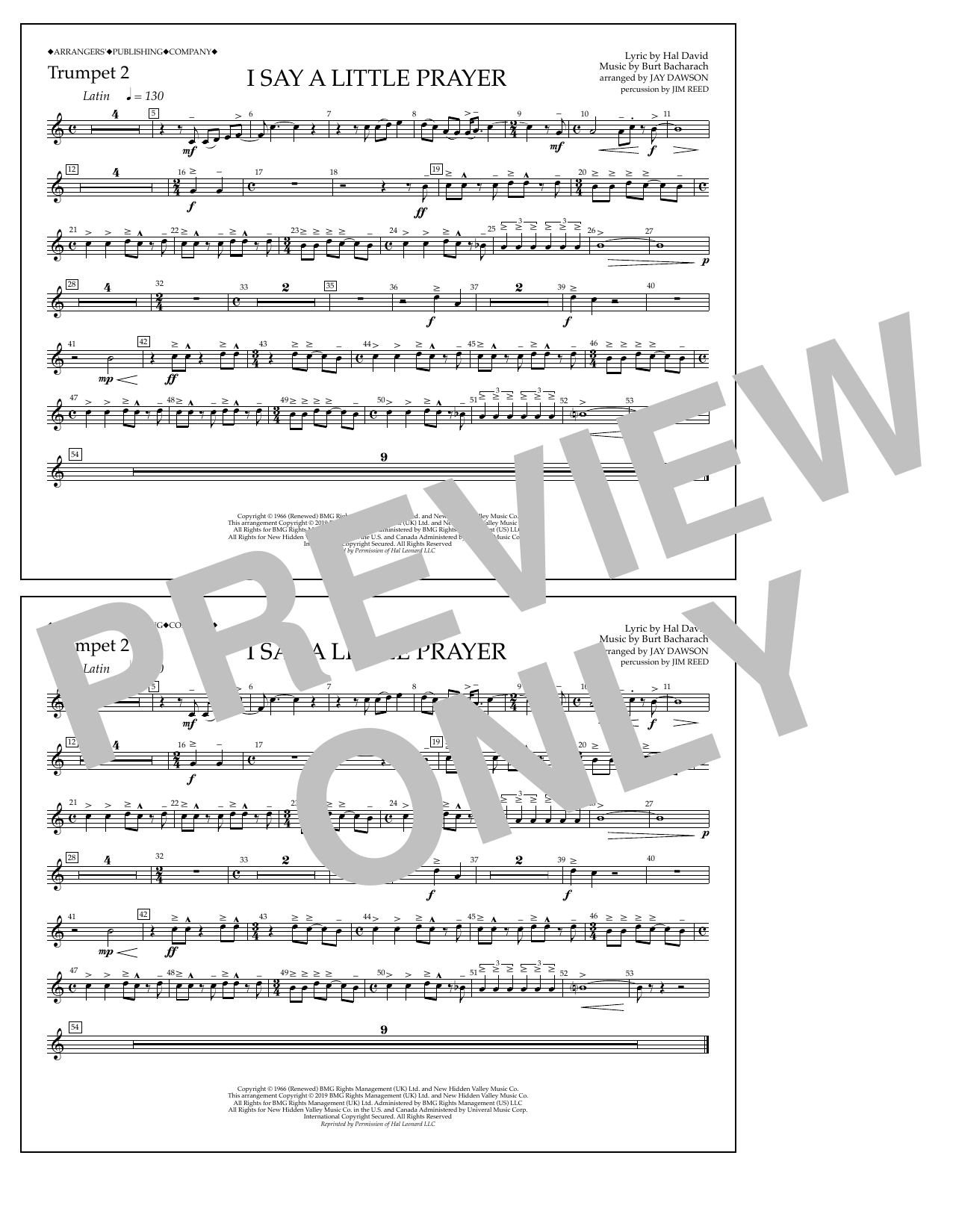 Quick facts I Say a Little Prayer (arr. Jay Dawson) - Trumpet 2 about digital sheet music