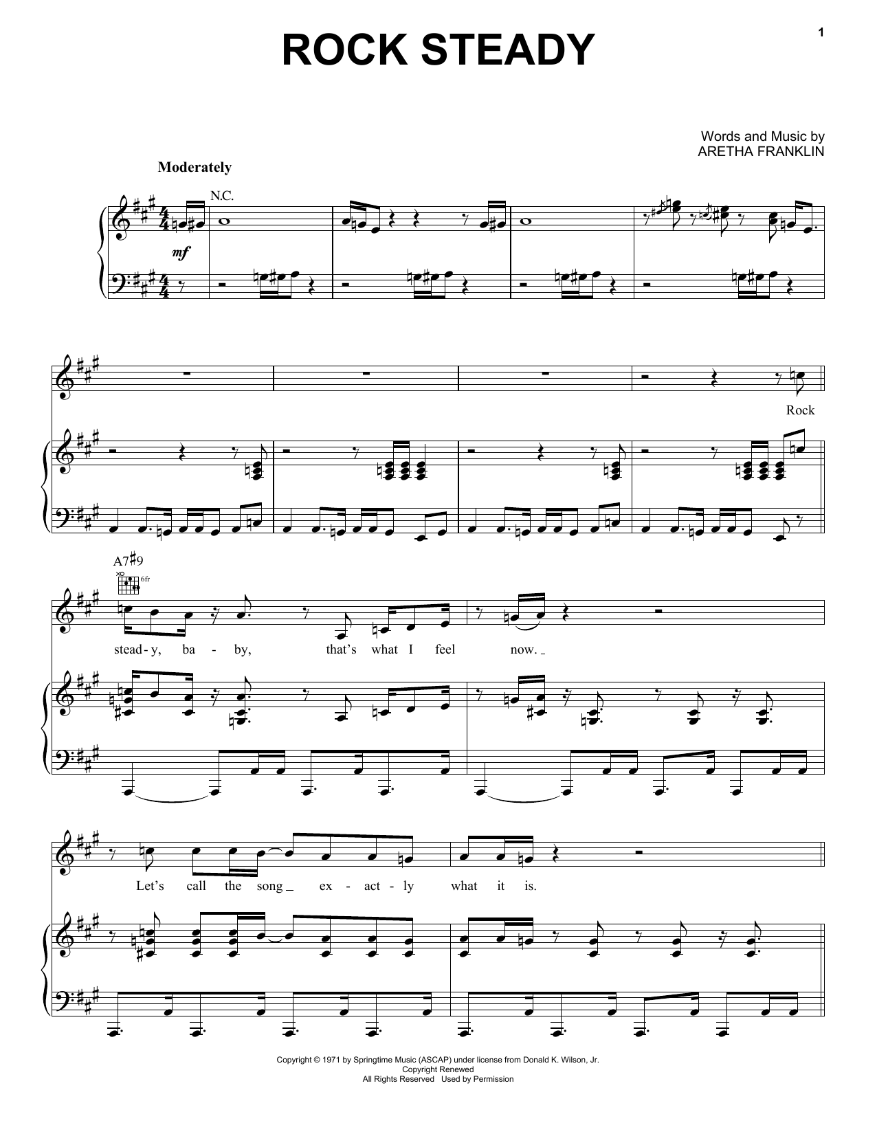 Download or print Aretha Franklin Rock Steady sheet music, chords and digital score arranged for Piano, Vocal & Guitar Chords (Right-Hand Melody). This Pop score includes 5 page(s).