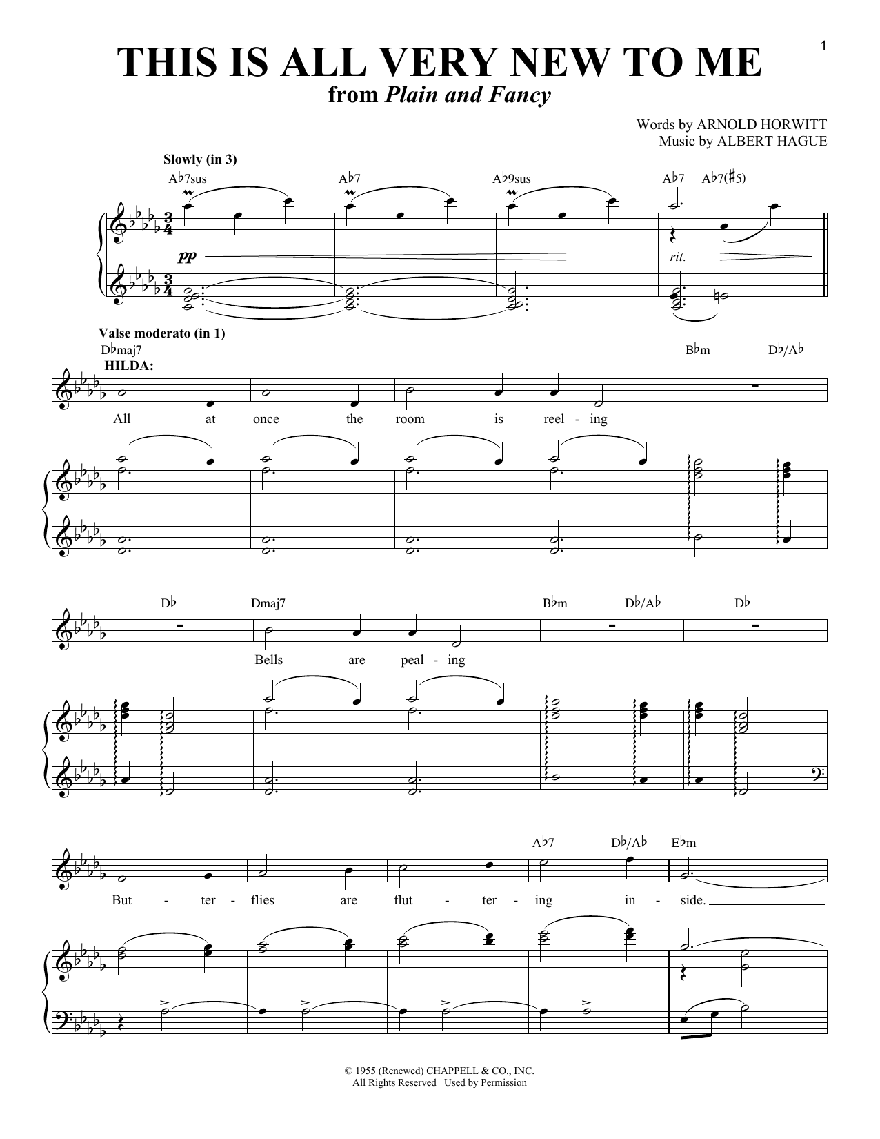 Download or print Arnold Horwitt and Albert Hague This Is All Very New To Me (from Plain and Fancy) sheet music, chords and digital score arranged for Piano & Vocal. This Musical/Show score includes 9 page(s).