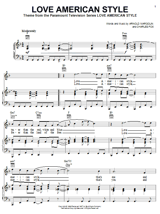Download or print The Cowsills Love American Style sheet music, chords and digital score arranged for Piano, Vocal & Guitar Chords (Right-Hand Melody). This Film/TV score includes 3 page(s).