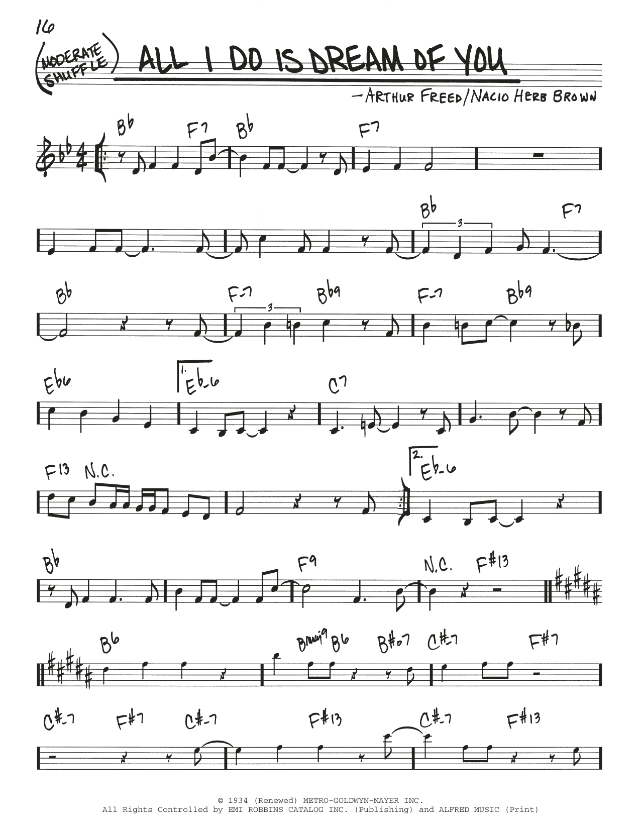 Download or print Arthur Freed and Nacio Herb Brown All I Do Is Dream Of You sheet music, chords and digital score arranged for Real Book – Melody & Chords. This Jazz score includes 2 page(s).