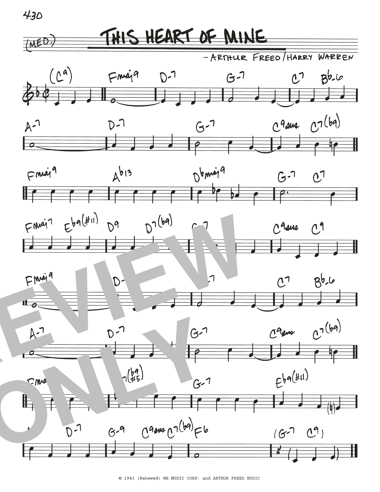Download or print Arthur Freed & Henry Warren This Heart Of Mine sheet music, chords and digital score arranged for Real Book – Melody & Chords. This Jazz score includes 1 page(s).
