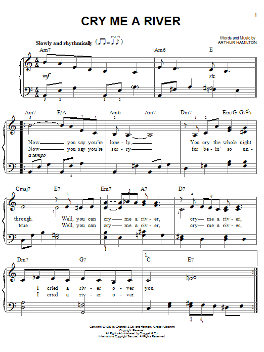 Download or print Arthur Hamilton Cry Me A River sheet music, chords and digital score arranged for Lead Sheet / Fake Book. This Pop score includes 1 page(s).