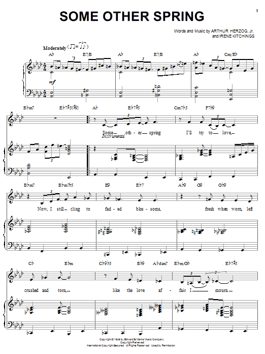 Download or print Arthur Herzog Jr. Some Other Spring sheet music, chords and digital score arranged for Real Book – Melody & Chords – Bb Instruments. This Jazz score includes 1 page(s).