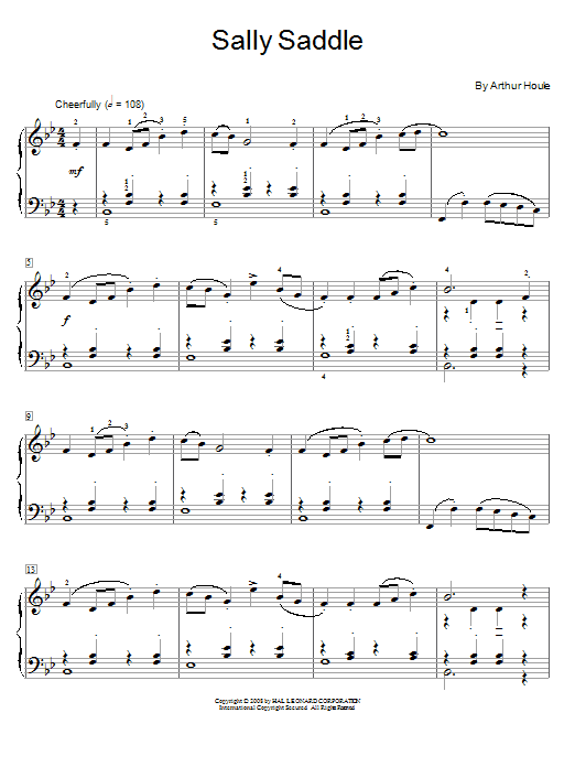 Download or print Arthur Houle Sally Saddle sheet music, chords and digital score arranged for Educational Piano. This Jazz score includes 2 page(s).