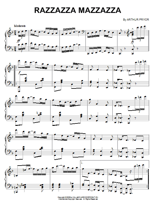 Download or print Arthur Pryor Razzazza Mazzazza sheet music, chords and digital score arranged for Piano Solo. This Jazz score includes 4 page(s).
