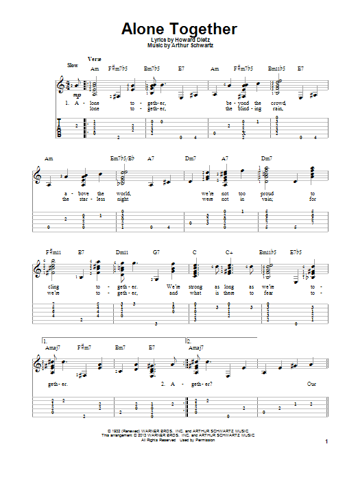 Download or print Arthur Schwartz Alone Together sheet music, chords and digital score arranged for Super Easy Piano. This Jazz score includes 2 page(s).