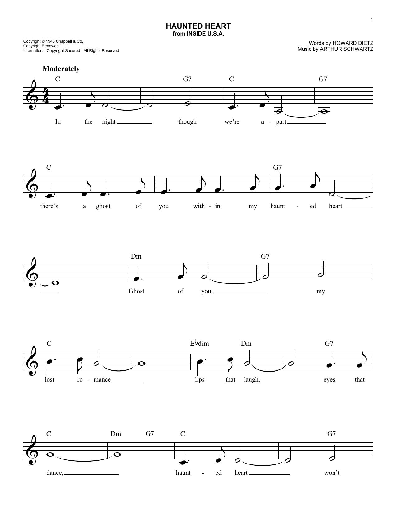 Download or print Arthur Schwartz Haunted Heart sheet music, chords and digital score arranged for Lead Sheet / Fake Book. This Jazz score includes 2 page(s).