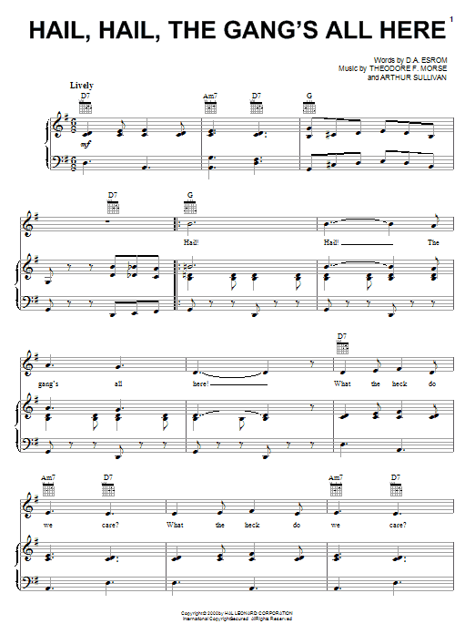 Download or print Arthur Sullivan Hail, Hail, The Gang's All Here sheet music, chords and digital score arranged for Piano, Vocal & Guitar Chords (Right-Hand Melody). This Children score includes 2 page(s).
