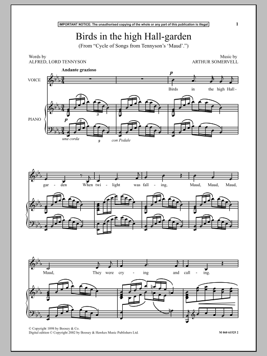 Download or print Arthur Somervell Birds In The High Hall Garden (from Cycle Of Songs From Tennyson's Maud) sheet music, chords and digital score arranged for Piano & Vocal. This Classical score includes 4 page(s).