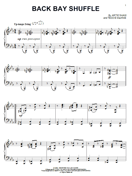 Download or print Artie Shaw Back Bay Shuffle sheet music, chords and digital score arranged for Piano Solo. This Country score includes 4 page(s).