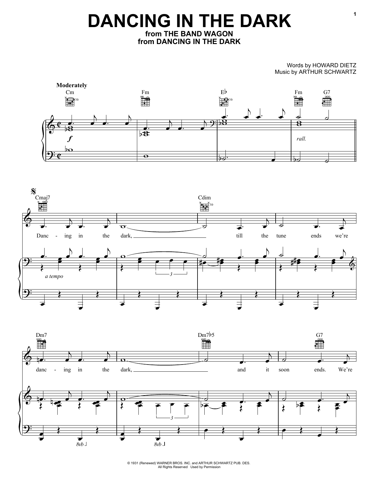 Download or print Artie Shaw & his Orchestra Dancing In The Dark sheet music, chords and digital score arranged for Piano, Vocal & Guitar Chords (Right-Hand Melody). This Standards score includes 4 page(s).