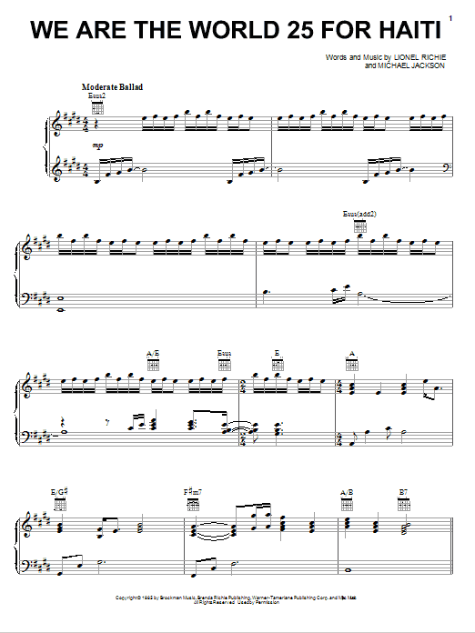 Quick facts We Are The World 25 For Haiti about digital sheet music
