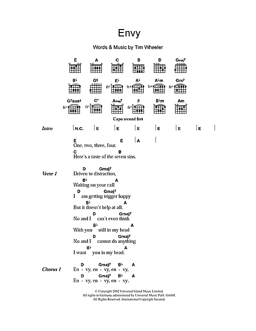 Download or print Ash Envy sheet music, chords and digital score arranged for Guitar Chords/Lyrics. This Rock score includes 3 page(s).