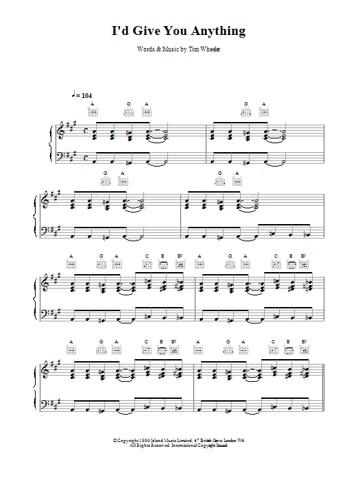 Download or print Ash I'd Give You Anything sheet music, chords and digital score arranged for Guitar Tab. This Pop score includes 4 page(s).