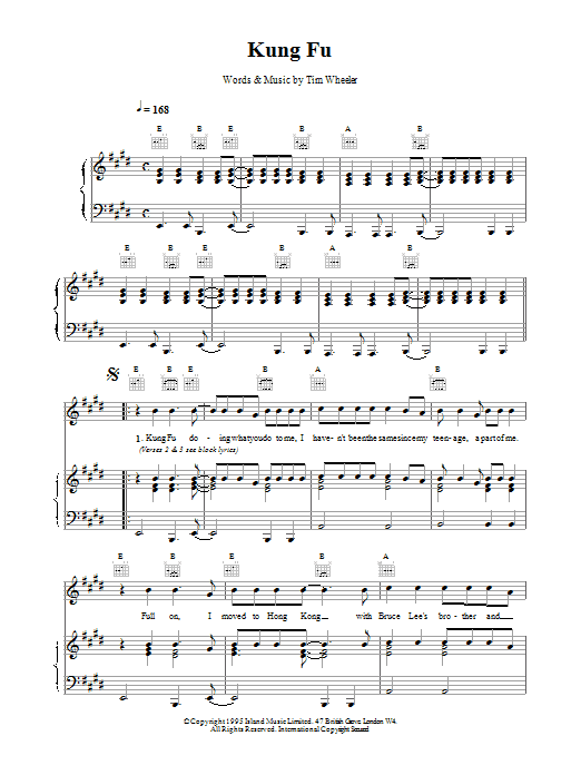 Download or print Ash Kung Fu sheet music, chords and digital score arranged for Piano, Vocal & Guitar Chords. This Alternative score includes 3 page(s).