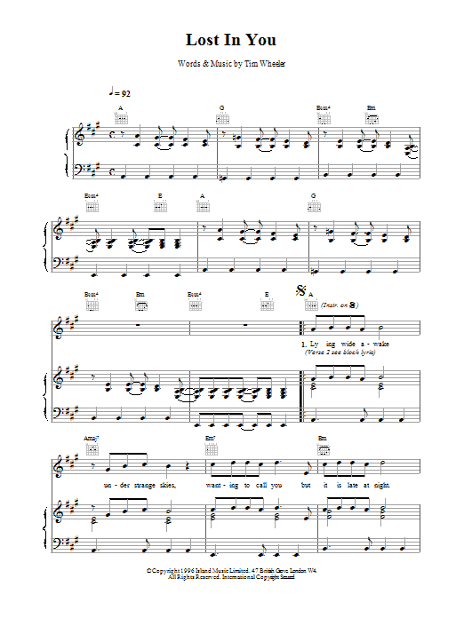 Quick facts Lost in You about digital sheet music