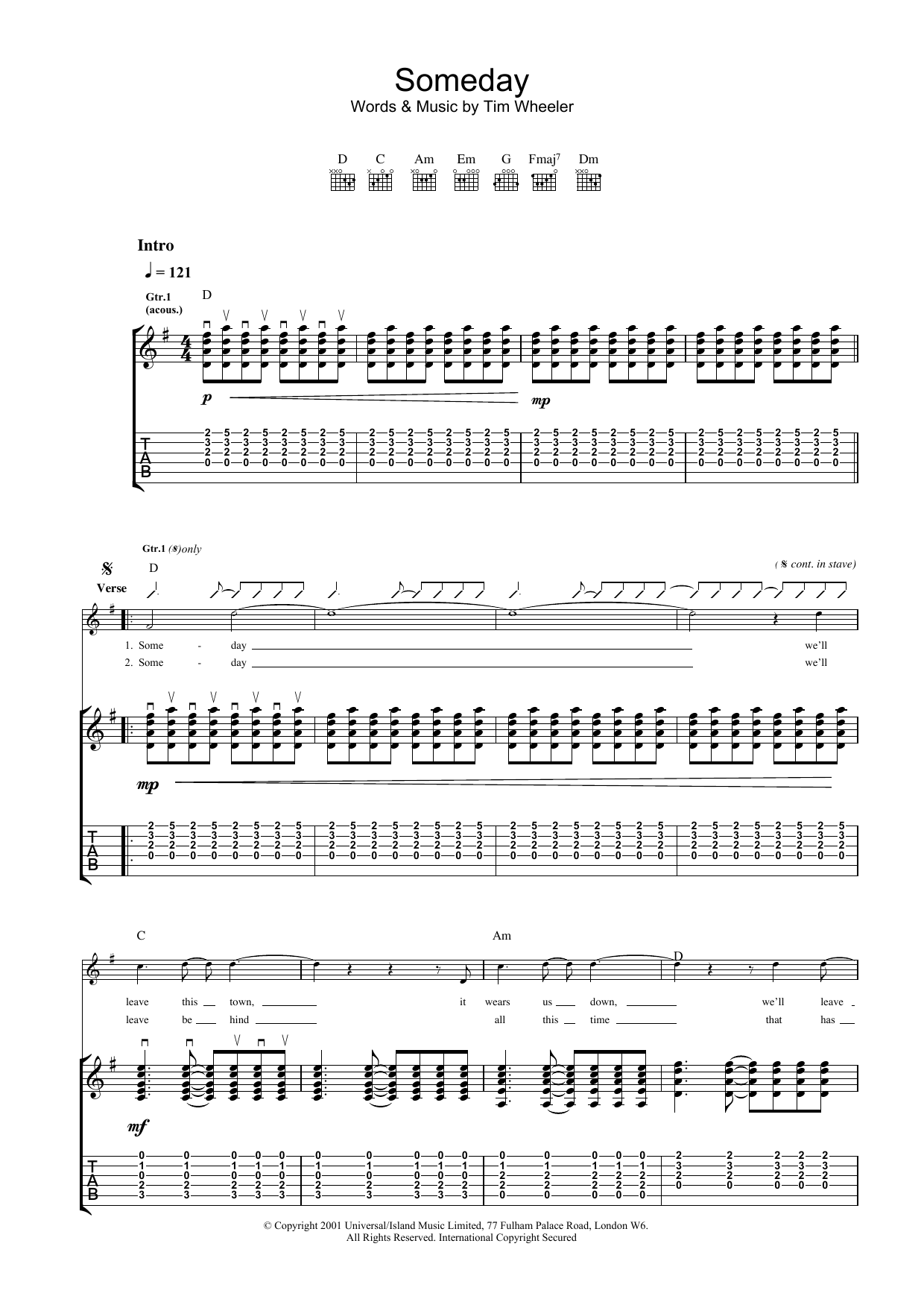 Download or print Ash Someday sheet music, chords and digital score arranged for Guitar Tab. This Alternative score includes 7 page(s).