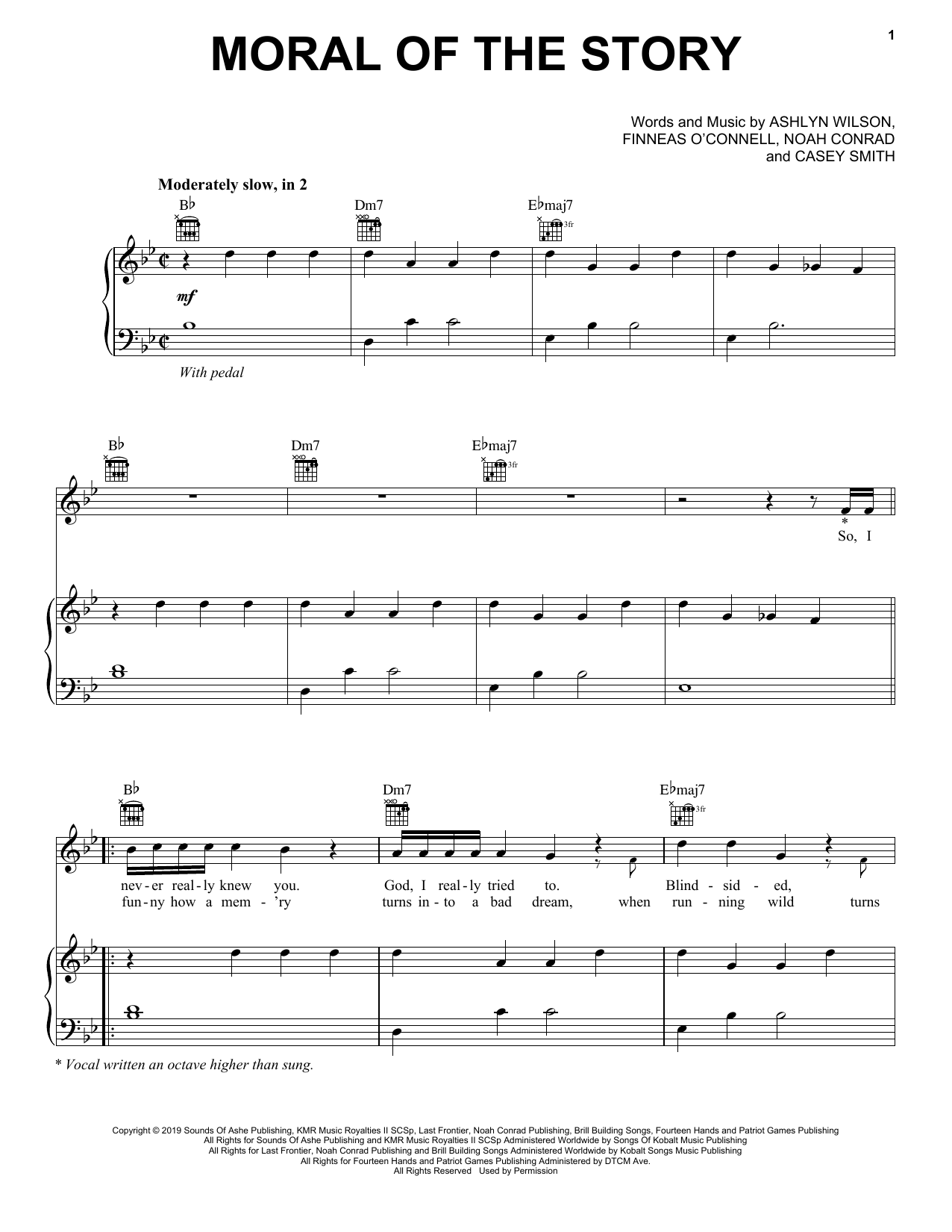 Download or print Ashe Moral Of The Story sheet music, chords and digital score arranged for Piano, Vocal & Guitar Chords (Right-Hand Melody). This Film/TV score includes 5 page(s).