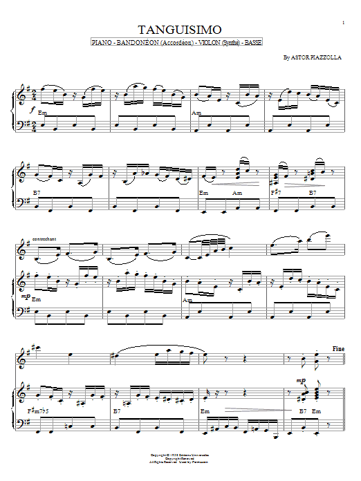 Download or print Astor Piazzolla Tanguisimo sheet music, chords and digital score arranged for Piano Solo. This Jazz score includes 2 page(s).