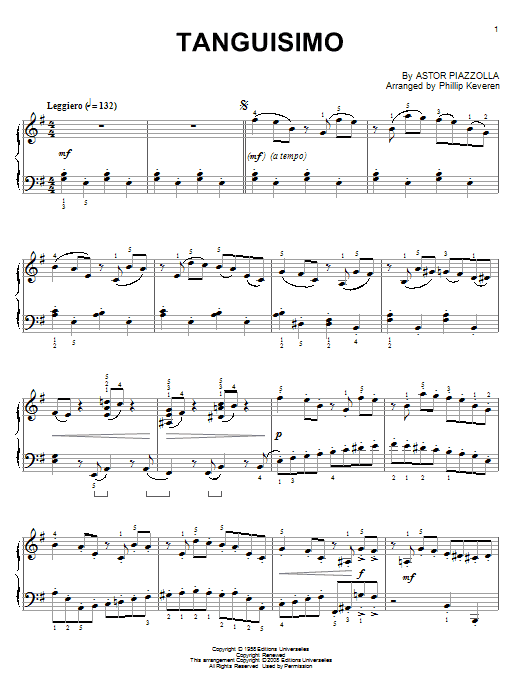 Download or print Astor Piazzolla Tanguisimo (arr. Phillip Keveren) sheet music, chords and digital score arranged for Piano Solo. This Latin score includes 2 page(s).