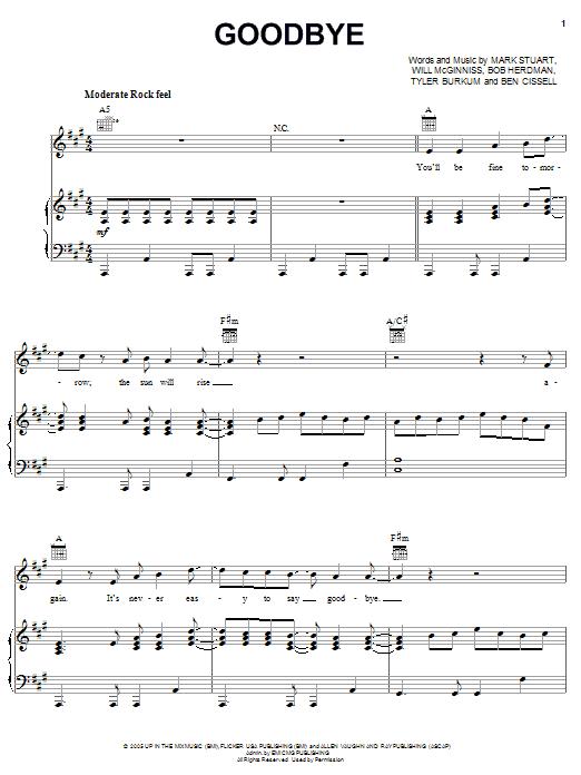 Download or print Audio Adrenaline Goodbye sheet music, chords and digital score arranged for Easy Piano. This Christian score includes 7 page(s).